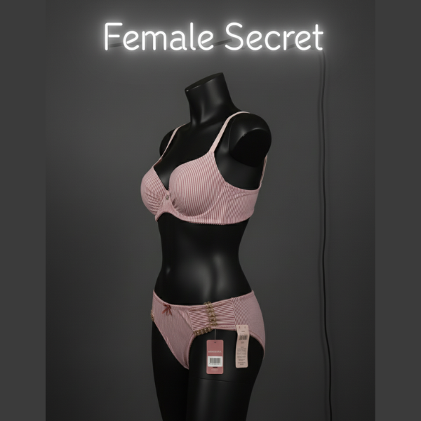 75% Off | Pack of 4 Striped Padded Bra And Panty Set with Chain Straps | Free Home Delivery - Rose gold / 32